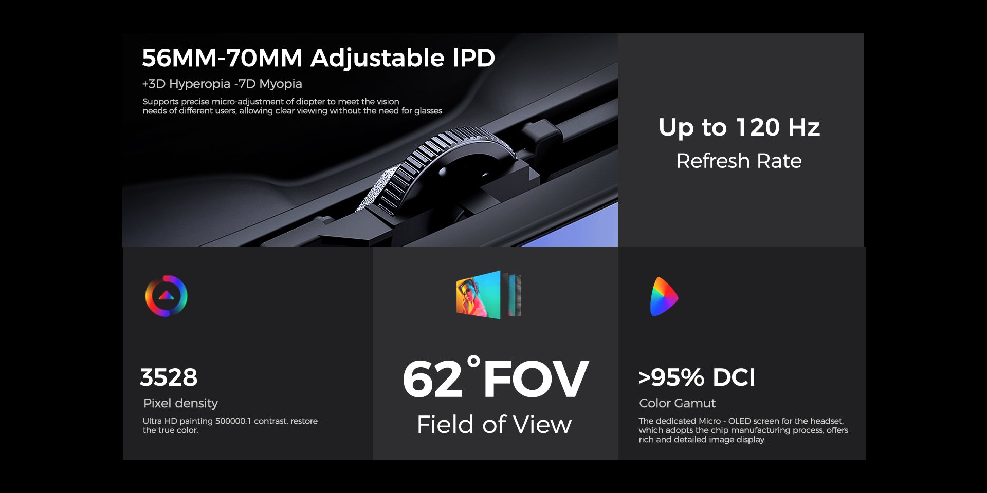NeoVista X7 - 62FOV, 45PPD, 3528PPI, 1440P 3D Cinematic Micro OLED Glasses